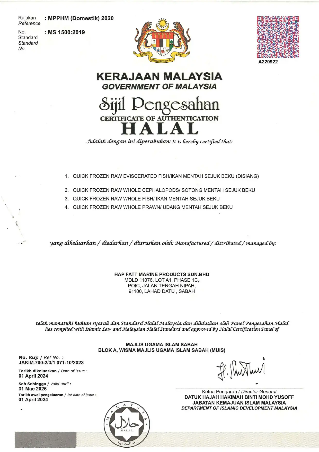 Headquartered in Lahad Datu, Sabah, Malaysia, Hap Fatt Marine Products Sdn Bhd operates both its administrative office and processing facilities from this strategic coastal location. As a prominent marine product supplier, we own a fleet of 13 fishing vessels, all docked at our dedicated private pier, ensuring direct and consistent access to fresh marine catch.