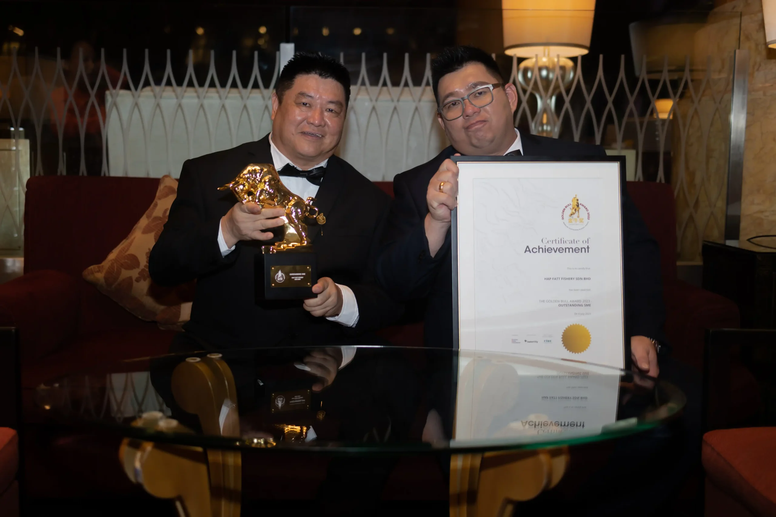 In 2023, Hap Fatt Marine Products Sdn Bhd was honoured with the Golden Bull Award – Outstanding Small and Medium Enterprises, one of Malaysia’s most credible and respected business accolades. Presented by the esteemed Nanyang Siang Pau, the award celebrates exceptional companies that demonstrate outstanding growth, innovation, and corporate governance. This recognition marks a significant milestone in our journey and reflects the trust and confidence placed in us by our customers and industry peers.